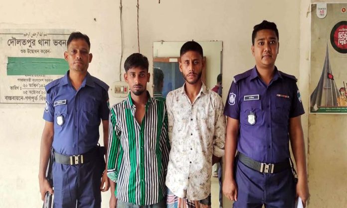 দৌলতপুর থানার ভারপ্রাপ্ত কর্মকর্তা আরিফুর রহমান দুই আসামী আটকের ঘটনার সত্যতা নিশ্চিত করেছেন। তিনি জানান, পুলিশের বিশেষ অভিযানে এই দুজনকে আটক করা হয়েছে। এ ছাড়া জিজ্ঞাসাবাদের জন্য ফরজ আলী নামের আরেক ব্যক্তিকে থানায় আনা হয়েছিল। তবে প্রাথমিক জিজ্ঞাসাবাদ শেষে তাকে তার পরিবারের জিম্মায় ছেড়ে দেওয়া হয়েছে।