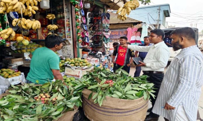 কুষ্টিয়ার কুমারখালীতে অপরিক্ক আম বিক্রি, মূল্য তালিকা না থাকা ও সড়ক জুড়ে ব্যবসা-বাণিজ্য পরিচালনার অপরাধে দুই ব্যবসায়ীকে এক হাজার ৫০০ টাকা জরিমানা করেছেন ভ্রাম্যমাণ আদালত। এছাড়াও অন্তত ১৫ জন ব্যবসায়ীকে কড়া সতর্ক করা হয়।