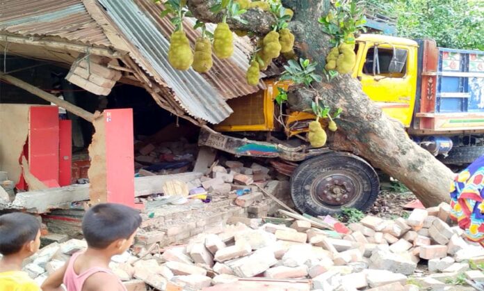স্থানীয়রা জানান, ভোররাতে সবাই যখন ঘুমিয়ে ছিলেন, তখন হঠাৎ বিকট শব্দে তাদের ঘুম ভেঙে যায়। দ্রæত বাইরে বেরিয়ে এসে দেখতে পান একটি মালবাহী ট্রাক নিয়ন্ত্রণ হারিয়ে পঁচা শেখের বাড়ির ঘরের ভেতরে ঢুকে পড়েছে। এতে ঘরের ব্যাপক ক্ষয়ক্ষতি হয় এবং আহত হন বাড়ির দুই নারী সদস্য।