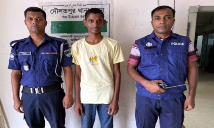 কুষ্টিয়ার দৌলতপুরে বিশেষ অভিযান চালিয়ে হত্যা মামলার প্রধান আসামি এক কিশোরকে (১৪) গ্রেপ্তার করেছে পুলিশ।