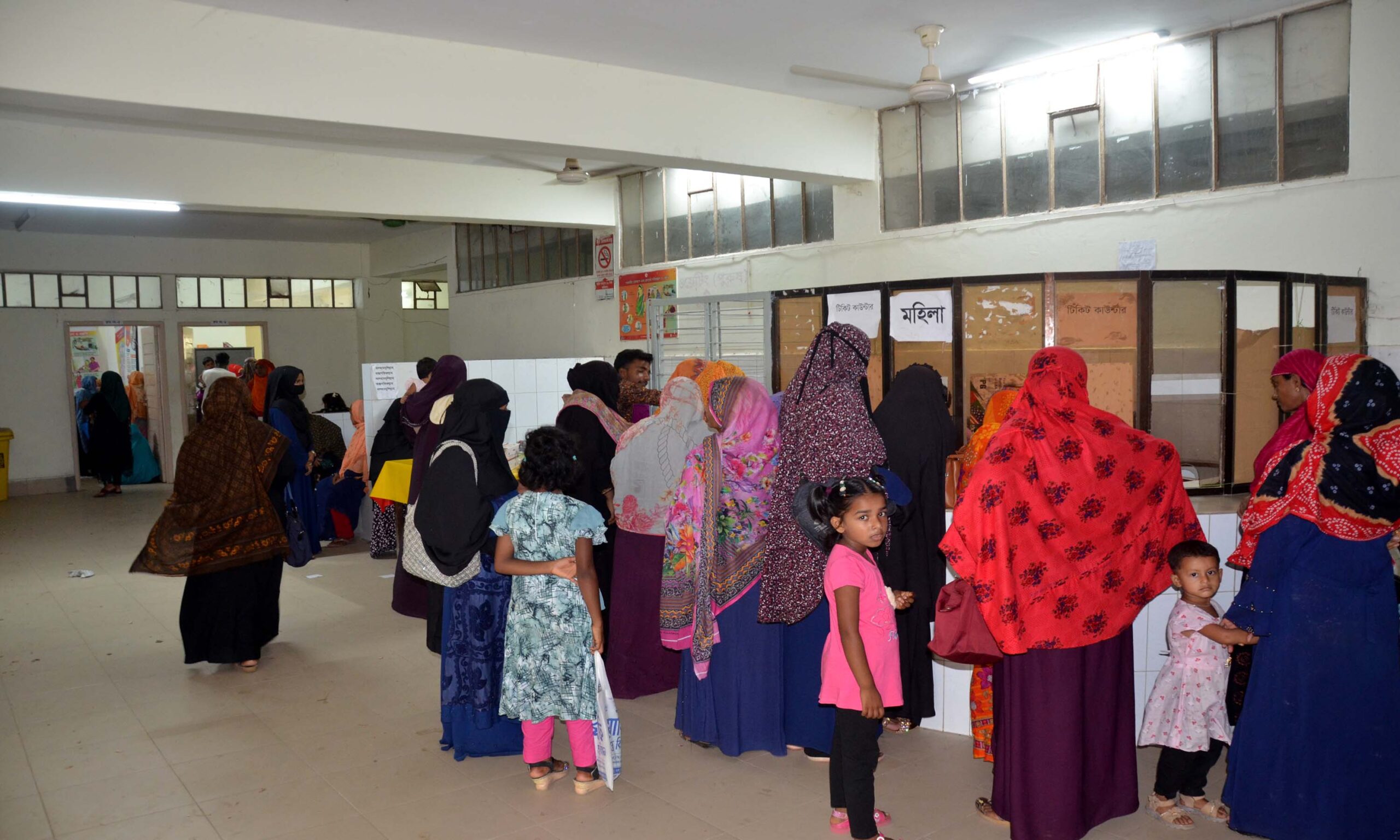 সোমবার তখন বেলা সবে ১২টা ২৪ মিনিট। বহির বিভাগে ঢুকতেই পুকুরের পাড়ে ওষুধ কম্পানির ২৫/৩০ জন প্রতিনিধিকে দাড়িয়ে খোস গল্প করতে দেখা যায়। তখনও ¯িøপের জন্য কাউন্টারে সামনে অপেক্ষা করছে প্রায় ৩০ জনেরও বেশী শিশু নারী ও পুরুষ রোগী এবং তাদের স্বজনরা। ভিতরে ঢুকে মাত্র একজন মেডিকেল অফিসার (আয়ুর্বেদ)কে তার কক্ষে পাওয়া গেলো। অন্য একটি কক্ষে মহিলা ও শিশু রোগীদের সেবা দিচ্ছিলেন একজন নার্স। আশা নামের এই স্বাস্থ্য কর্মীর মিড ওয়াইফ নামের আর একটি পদবী রয়েছে। একই কক্ষে রোগীদের চিকিৎসা দিচ্ছিলেন উপসহকারী কমিউনিটি মেডিকেল অফিসার ফাহিমা হেলেন। বিষেশজ্ঞ ডাক্তার রাজিব কুমার সাহার কক্ষে এসি চলছিলো। তিনি ভিতরে নেই। তার কক্ষ থেকে এক সহকারী জানান এই বিষেশজ্ঞ ডাক্তার সপ্তাহের রবি মঙ্গল ও বৃহস্পতিবার অফিস করেন।