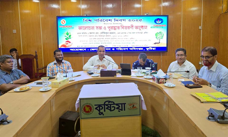 কুষ্টিয়ায় বিশ্ব পরিবেশ দিবস উদযাপন উপলক্ষ্যে আলোচনা সভা ও পুরস্কার বিতরণী অনুষ্ঠিত হয়েছে।