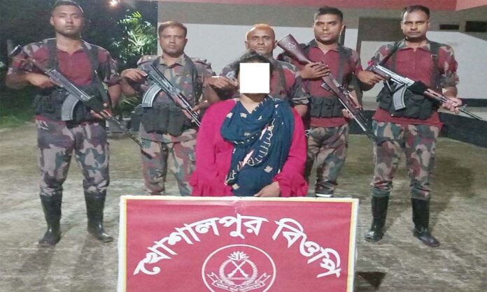 রবিবার দিনগত রাতে মহেশপুর ব্যাটালিয়নের অধীনস্থ খোশালপুর বিওপির নিয়মিত টহল দলের সদস্যরা তাকে খোশালপুর মোড় এলাকায় সীমান্ত থেকে প্রায় ৯০০ গজ বাংলাদেশের অভ্যন্তরে থেকে আটক করে। আটককৃত নারীর নাম ফাল্গুনী রায় (২৮)। তিনি ভারতের পশ্চিমবঙ্গ রাজ্যের উত্তর চব্বিশ পরগনা জেলার বনগাঁ থানার আরশিংড়ী গ্রামের বাসিন্দা। তার পিতার নাম মৃত বিশ্বনাথ রায়। বিজিবি সূত্রে জানা গেছে, তার কাছে বৈধ ভারতীয় পরিচয়পত্র পাওয়া গেছে।