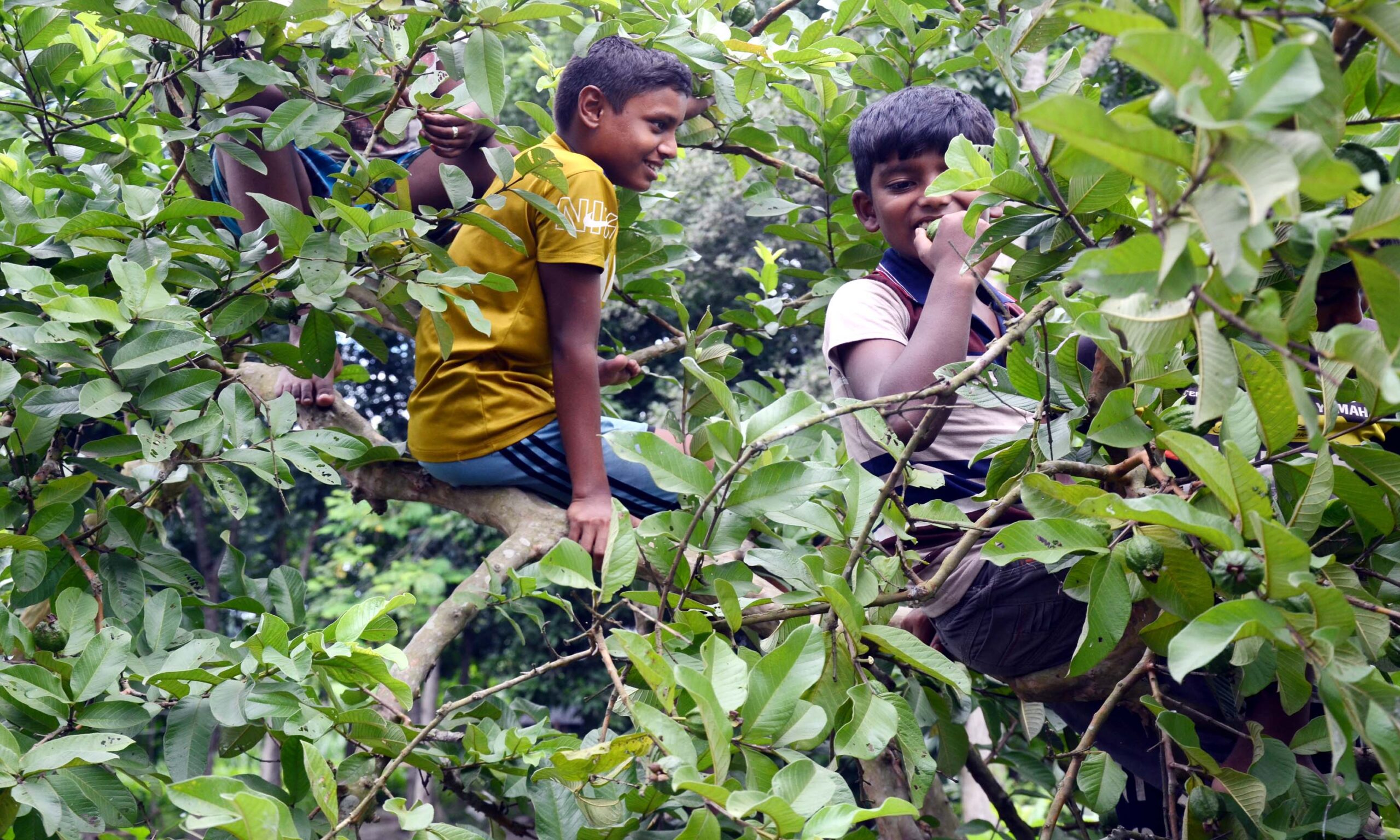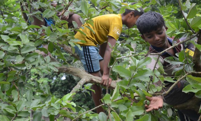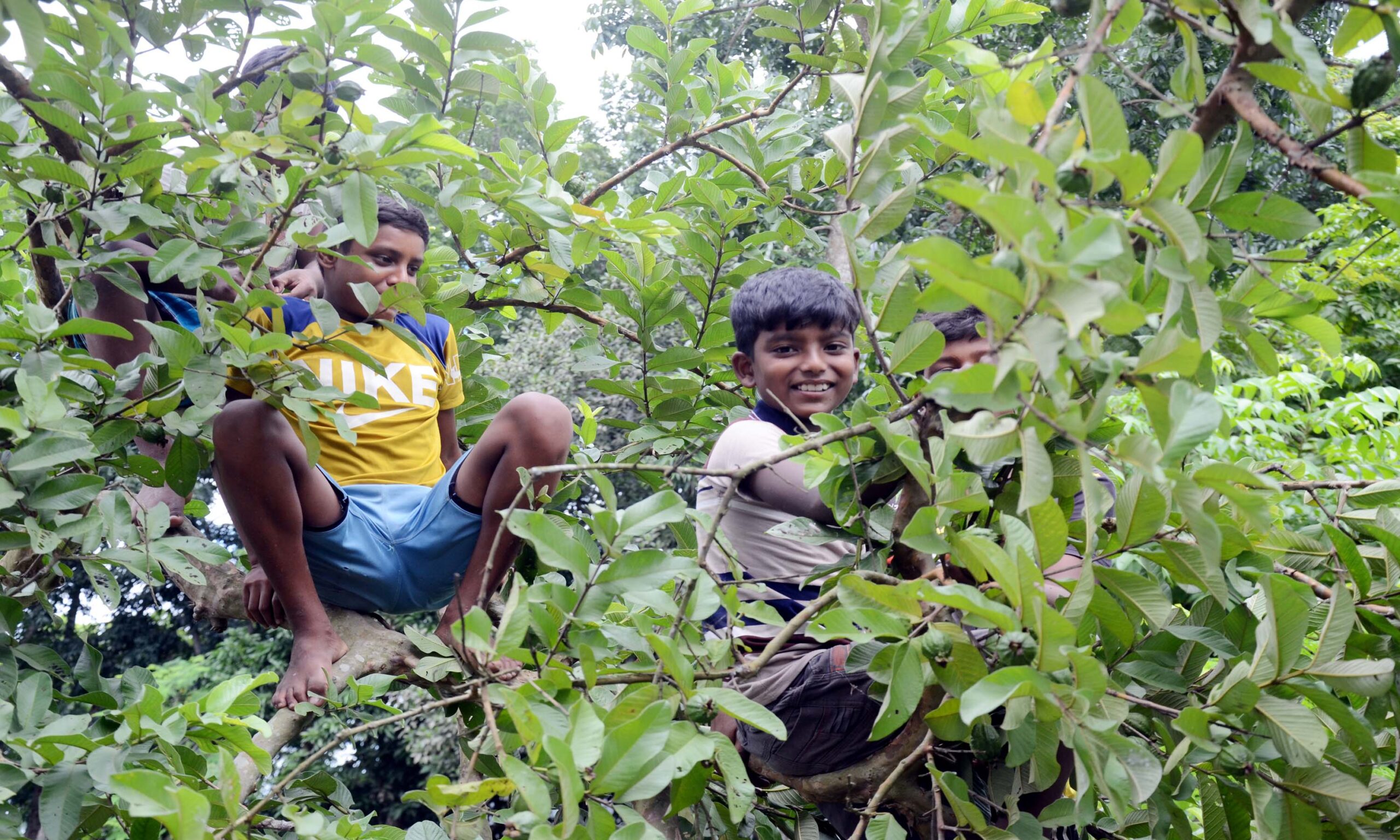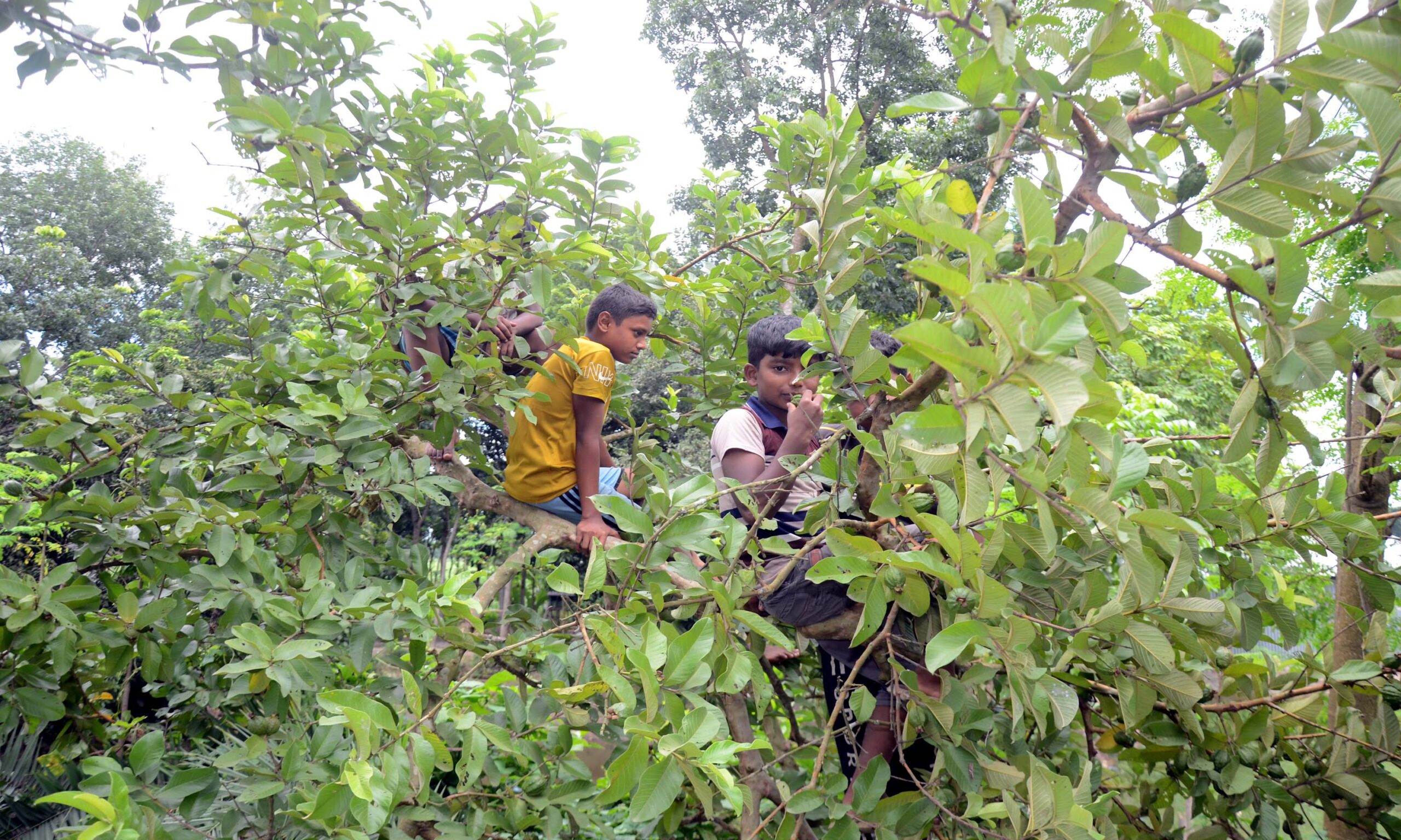 স্কুল পালিয়ে ওরা পথের ধারের পেয়ারা গাছে চরে বসেছে। পেয়ারা খাবার আশায়। ফল পেলেও তা নিতান্তই কাঁচা। খোকসা-কালীতলা সড়কের জয়ন্তী হাজরা ইউনিয়নের জয়ন্তী হাজরা গ্রাম থেকে ছবিটি তোলা।