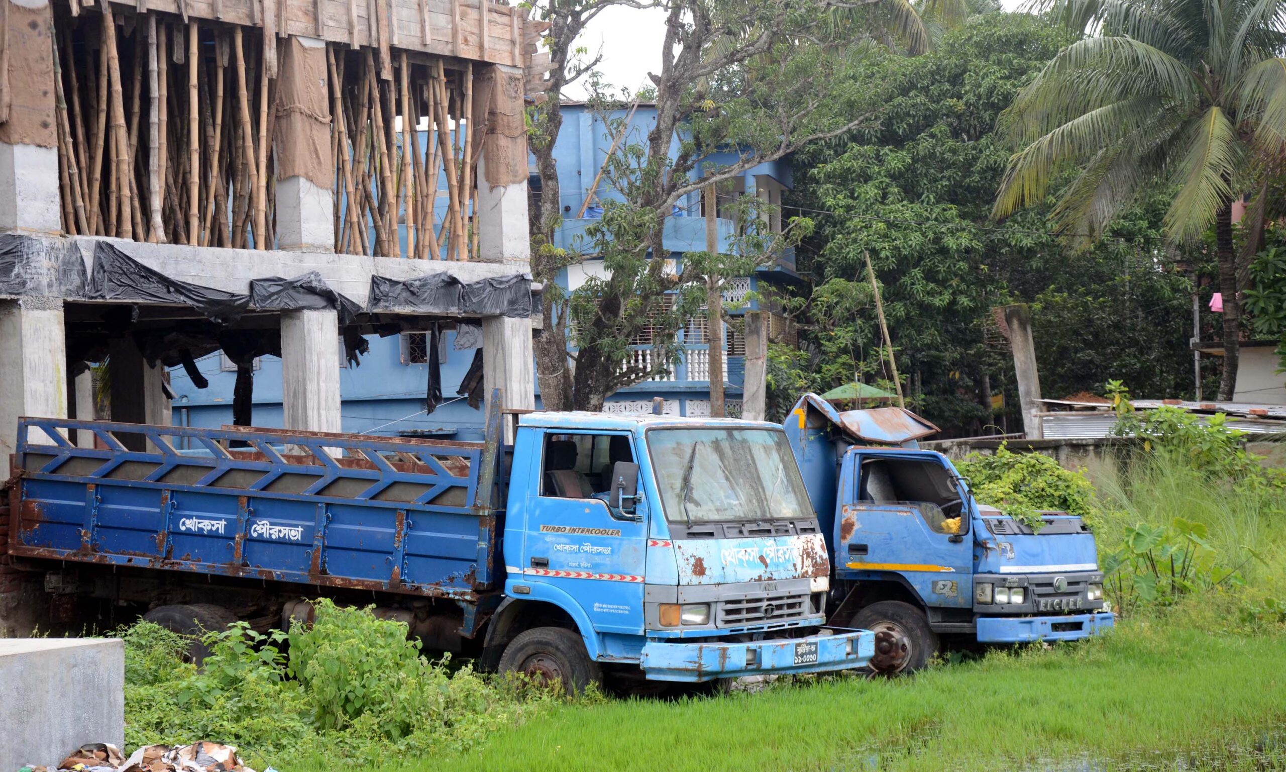খোলা আকাশের নিচে সরকারী বরাদ্দে পাওয়া গাড়ি গুলো ঘাস লতা পাতায় আকঁড়ে ধরেছে। এর মধ্যে রয়েছে দুটি রোলার, (রাস্তার কাজে ব্যবহার হয়) তিনটি পিকাপ ভ্যানসহ ৬ টি গাড়ি। যার মূল্য প্রায় দেড় কোটি টাকা ছাড়িয়ে যাবে। ঝড়ে গাছ পড়ে নতুন একটি পিকাপ ভ্যান দুমড়ে মুচড়ে যায়, আর মেরামত করা হয়নি। বাঁকীগুলো ভালো ছিল। কিন্তু খোলা আকাশের নিচে গাড়ি গুলো ফেলে রাখায় সে গুলোও অচল হয়ে গেছে। দুই যুগেও কর্তৃপক্ষ সংরক্ষন বা মেরামতের উদ্যোগ নেয়নি। খোকসা পৌর ভবনের সামনে ও পেছন ফেলে রাখা গাড়ি গুলোর ছবিটি রবিবার তোলা।