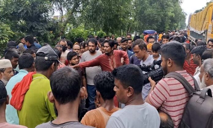 এদিকে হত্যাকান্ডের প্রতিবাদে বিক্ষুব্ধ এলাকাবাসী সকাল থেকে কুষ্টিয়া-রাজবাড়ী আঞ্চলিক মহাসড়ক অবরোধ করে বিক্ষোভ প্রদর্শন করে। সময় সড়কের দুই পাশে যানজটের সৃষ্টি হয়। বেলা ১২ টার দিকে সেনাবাহিনীর সদস্যরা ঘটনাস্থলে গিয়ে পরিস্থিতি নিয়ন্ত্রণ করেন। এরপর বিক্ষুব্ধ এলাকাবাসী মোল্লাতেঘরিয়া থেকে শহরের থানা মোড় পর্যন্ত অভ্যন্তরীণ রাস্তা অবরোধ করে লাশ নিয়ে বিক্ষোভ শুরু করেন।
