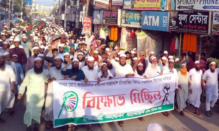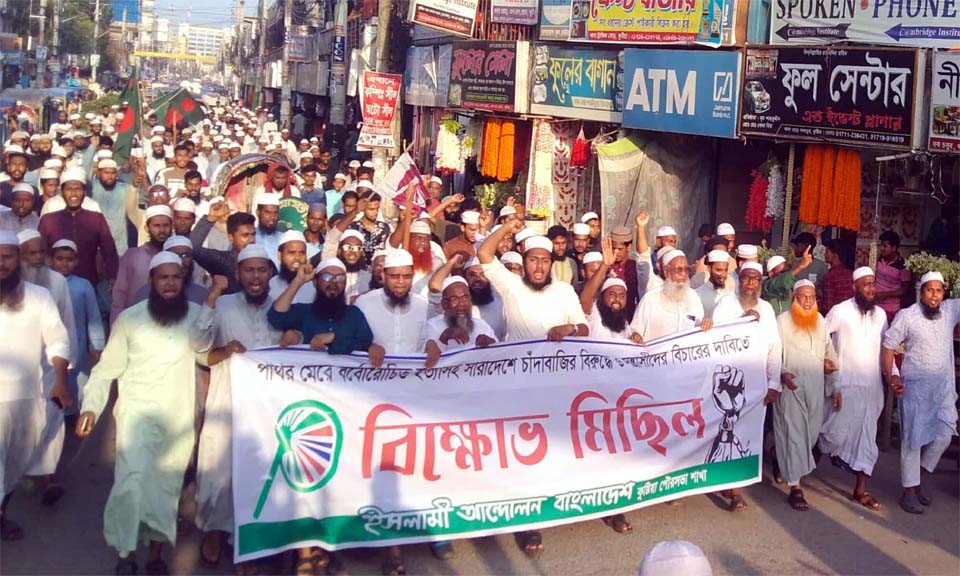 শনিবার বিকালে কুষ্টিয়া শহরের বড় জামে মসজিদ থেকে এই বিক্ষোভ মিছিল শুরু হয়ে শহরের পাঁচ রাস্তার মোড়ে এসে শেষ হয়। পরে সেখানে সংক্ষিপ্ত সমাবেশ অনুষ্ঠিত হয়।