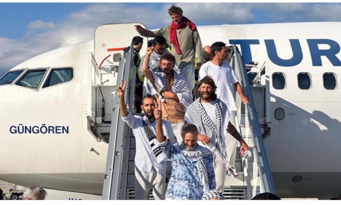 তুরস্কের পররাষ্ট্র মন্ত্রণালয় থেকে জানানো হয়েছে, ইসরায়েলে আটক ১৩৭ জন কর্মীকে শনিবার (৪ অক্টোবর) তুর্কি এয়ারলাইন্সের একটি ফ্লাইটে ইস্তাম্বুলে আনা হচ্ছে। তাদের মধ্যে ৩৬ জন তুরস্কের নাগরিক। ফেরত পাঠানো কর্মীদের মধ্যে যুক্তরাষ্ট্র, সংযুক্ত আরব আমিরাত, আলজেরিয়া, মরক্কো, ইতালি, কুয়েত, লিবিয়া, মালয়েশিয়া, মৌরিতানিয়া, সুইজারল্যান্ড, তিউনিসিয়া ও জর্ডানের নাগরিক রয়েছেন।