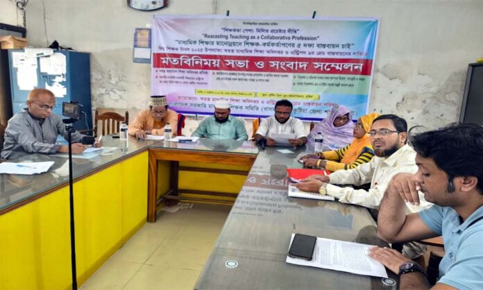 সরকারি মাধ্যমিকের শিক্ষক-কর্মকর্তারা স্বতন্ত্র মাধ্যমিক শিক্ষা অধিদপ্তর প্রতিষ্ঠা ও এন্ট্রিপদ নবম গ্রেডসহ ৫ দফা দাবিতে সংবাদ সম্মেলন করেছেন।