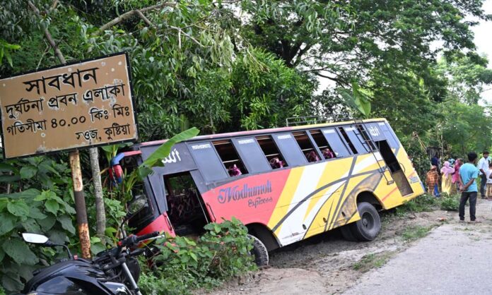 প্রত্যক্ষদর্শী সূত্রে জানা যায়, সোমবার বেলা ২টার দিকে সড়কটির মোড়াগাছা ক্লাব মোড়ে এ দুর্ঘটনা ঘটে। দুর্ঘটনা কবলিত যাত্রীবাহী বাসটির নম্বর ঢাকা মেট্রো – ব ০২ – ০৫৯৪। কুষ্টিয়া থেকে দৌলতদিয়ার উদ্দেশ্যে ৫০ জন যাত্রী বাসটি যাত্রা করে। ঘটনা স্থলে পৌচ্ছে চালক নিয়ন্ত্রন হারিয়ে সড়কের পাশে দাঁড়িয়ে থাকা পাখি ভ্যানেকে চাপা দিয়ে পালিয়ে যাওয়ার সময় বাসটি সড়কের পাশে নেমে যায়। দুর্ঘটনার পর চালক ও সহযোগীরা আত্মগোপন করে। বাসের চাকায় পিষ্ট ভ্যানচালক ও ভাঙারি ব্যবসায়ীর নাম রুবেল (৩২)। সে উপজেলার বিলাজানি গ্রামের শাহজাহান আলী শেখের ছেলে। গুরুতর আহত রুবেলকে কুষ্টিয়া জেনারেল হাসপাতালে রেফার্ড করা হয়।