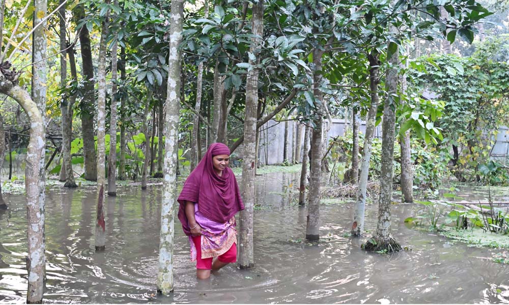 তিন সন্তানের মা রুমী খাতুন বলেন, ঘর বাড়িতে পানি উঠে পরছে। তার বড়ি যাওয়ার রাস্তাসহ গ্রামে ভিতরের ছোট পাতা রাস্তাটিও পানিতে ডুবে আছে। তার ছেলে মেয়েরা স্কুলে যেতে পারছে না।