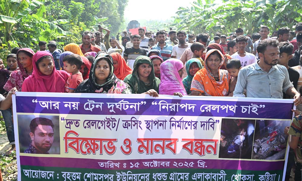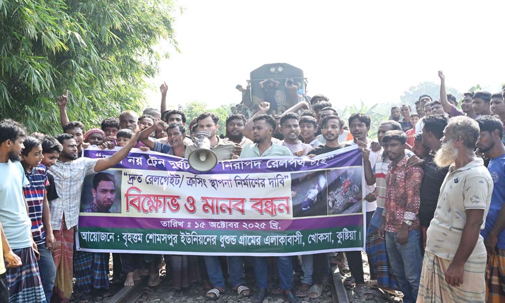 বৃহস্পতিবার সকাল ৯ টায় থেকে ১০টা ৪০মিনিট পর্যন্ত খোকসা উপজেলার শোমসপুর ইউনিয়নের ধুসুন্ডা গ্রামের রেল