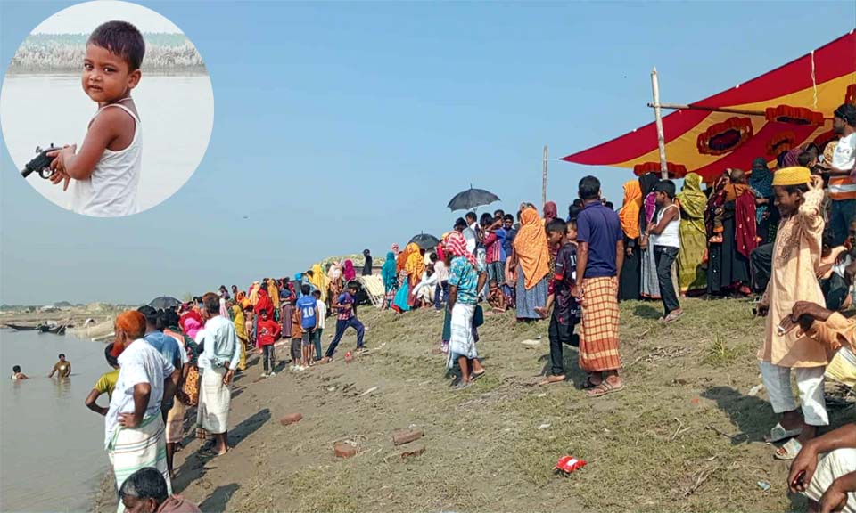 দুপুরে সরেজমিন গিয়ে দেখা যায়, আরিয়ানের বাড়ি থেকে প্রায় ৫০০ গজ দুরে পদ্মানদীর কোল। কোলের পাড়ে উৎসুক জনতা ও স্বজনদের ভিড়। নদীতে অভিযান চালাচ্ছেন ফায়ার সার্ভিসের সদস্যরা।