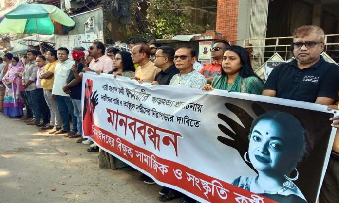 মিডিয়াকর্মী স্বর্ণময়ীর মৃত্যু রহস্যের সঠিকভাবে উদঘাটন ও প্ররোচনাকারীদের শাস্তির দাবিতে মানববন্ধন কর্মসূচি পালিত হয়েছে।
