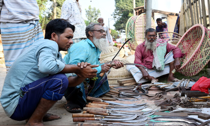 ধানকাটা সহ রবি ফসল আবাদ মৌসূম শুরু হয়েছে। ধান কাটা ও আবাদের কাজের প্রধান উপকরণ কাঁচি। তাই নতুন কাঁচির কদর বেড়েছে। সব কৃষক কাঁচি কেনায় ব্যস্ত। ফুটপাতের লোহার কৃষি উপকরণ বিক্রির দোকান থেকে কাঁচি ঈশপাতের তৈরী কি না তা পরীক্ষা নিরীক্ষা করে নিচ্ছেন কৃষকরা। কুষ্টিয়ার খোকসার সাপ্তাহিক হাট থেকে মঙ্গলবার বিকালে ছবিটি তেলা।