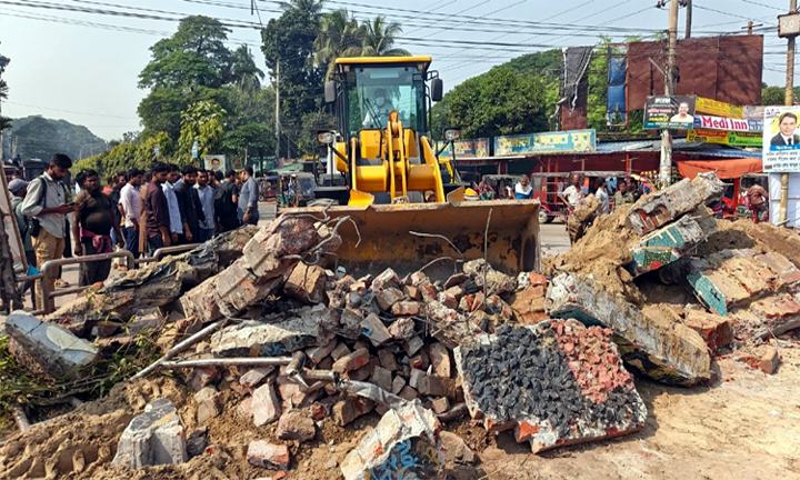 বৃহস্পতিবার সকালে ঝিনাইদহ শহরের স্বাধীনতা চত্বর থেকে বুলডোজার দিয়ে শেখ মুজিবর রহমানের স্তম্ভ গুড়িয়ে দেওয়া হয়।