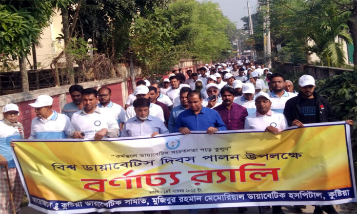 কুষ্টিয়ায় বর্ণাঢ্য র্যালী ও আলোচনা সভা সভার মধ্য দিয়ে বিশ্ব ডায়াবেটিস দিবস পালিত হয়েছে।