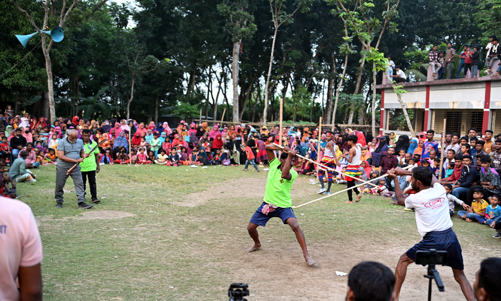 কুষ্টিয়ার খোকসার চাঁদট গ্রামে ঐতিহ্যবাহী লাঠি খেলার প্রতিযোগীতা অনুষ্ঠিত হয়েছে।