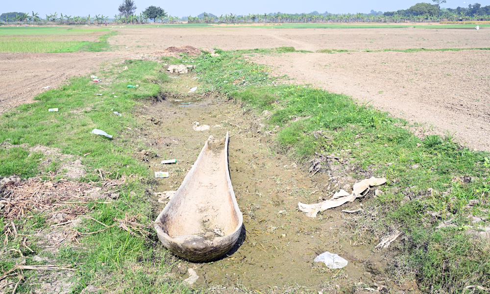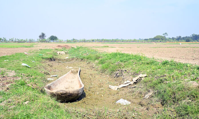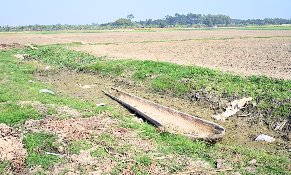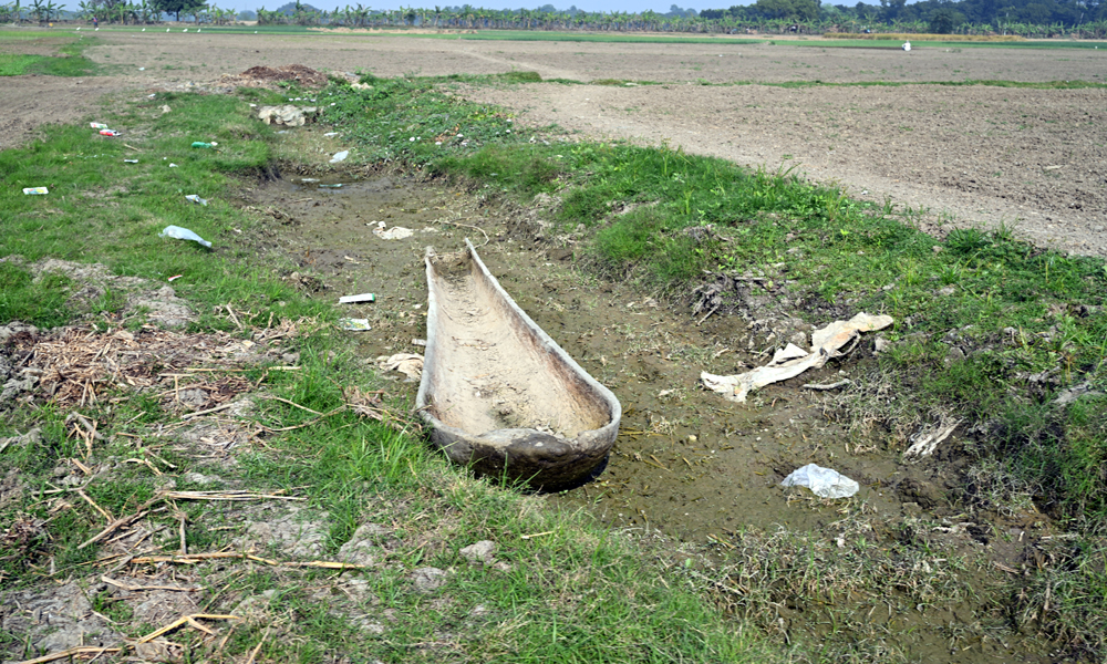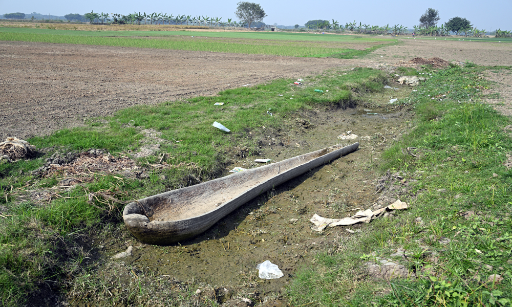 বর্ষা চলে গেছে, বিল বাওড় শুকিয়ে গেছে, নতুন চাষ শুরু হয়েছে। অপ্রয়োজনীয় ও মূল্যহীন হয়ে পড়েছে তালের ডোঙা খানা। পানি শুকুয়ে ডোঙা খানার নিচের মাটিতে সবুজ ঘাস গজাতে শুরু করেছে। জীবনানন্দের বিখ্যাত কবিতার চরনটি “ফুরায় জীবনের সব লেনদেন, থাকে শুধু অন্ধকার,”। সোমবার দুপুরে কুষ্টিয়ার খোকসার রতনপুর বিল থেকে তোলা ছবি।