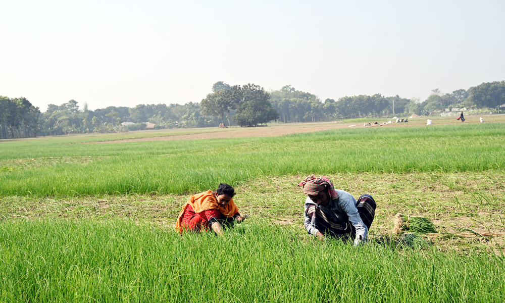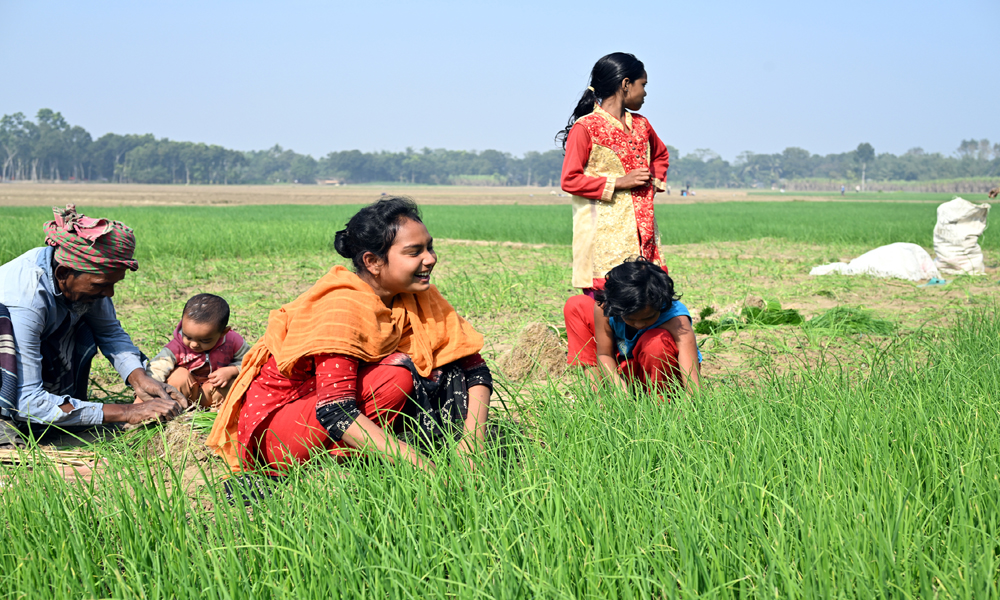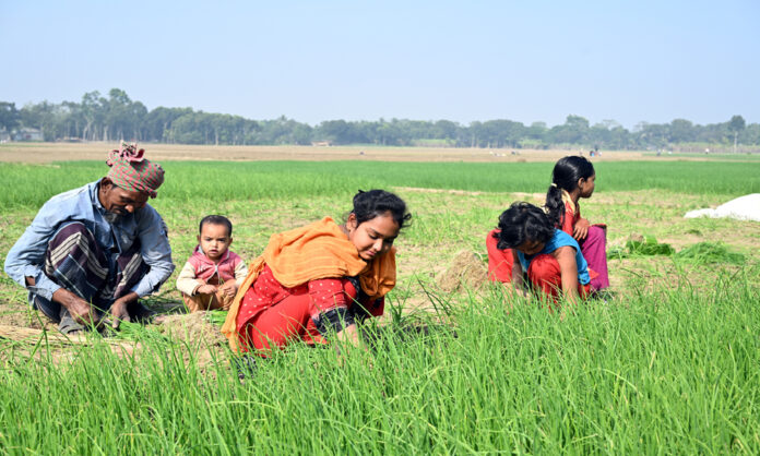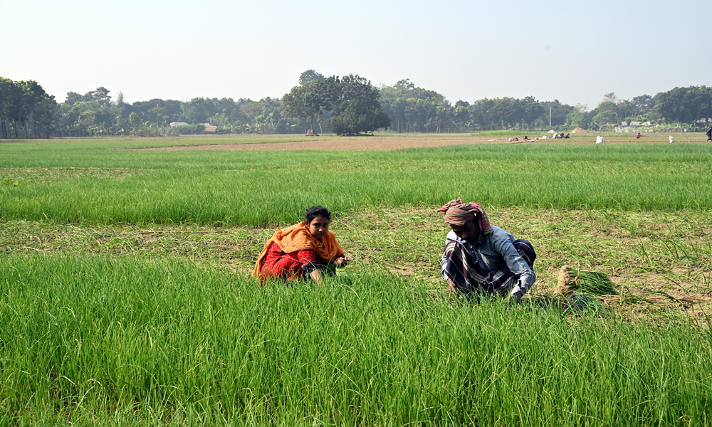 শীতকালীন পেঁয়াজ আবাদ মৌসূম শুরু হয়েছে। প্রতিটির কৃষকের জমিতে চারা রোপণ চলছে। বীজতলা থেকে পেঁয়াজের চারা তুলে জমিতে পাঠাতে হবে। তাই সবাই ব্যস্ত। শিশুদেরও বসে থাকার ফুসুরত নেই। বড়দের পাশাপাশি তারাও (শিশুরা) বীজতলা থেকে পেঁয়াজের চারা তুলে দিয়ে পরিবারের সহযোগীতায় এগিয়ে এসেছে। কুষ্টিয়ার খোকসার জয়ন্তী হাজরা ইউনিয়নের ব্যাংগাড়িয়া মাঠ থেকে শনিবার ছবিটি তোলা।