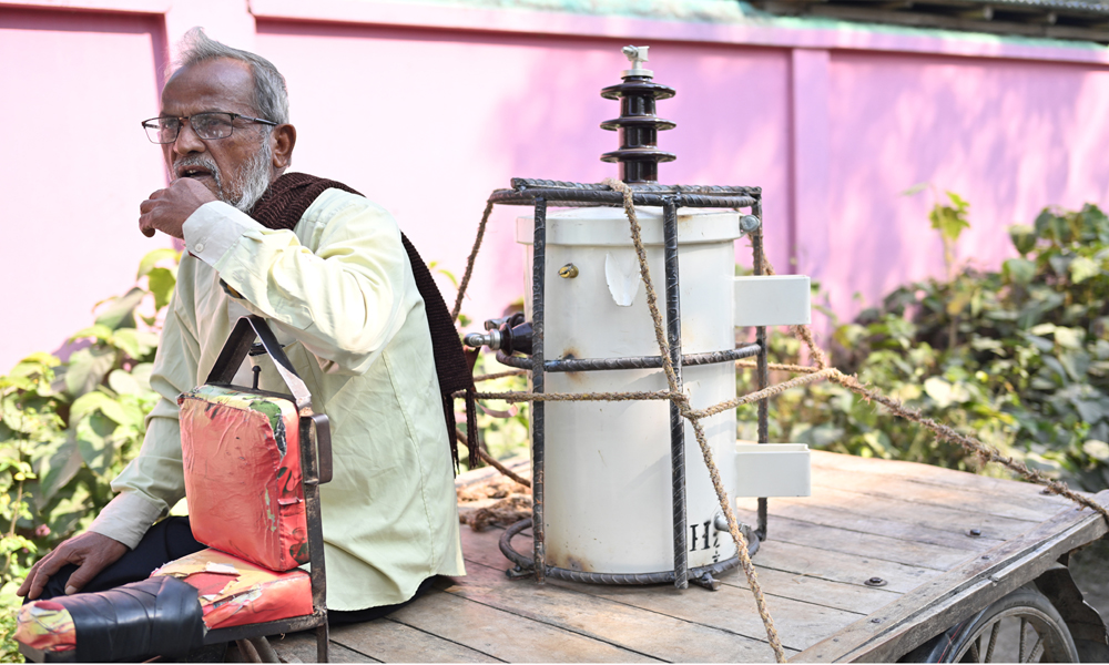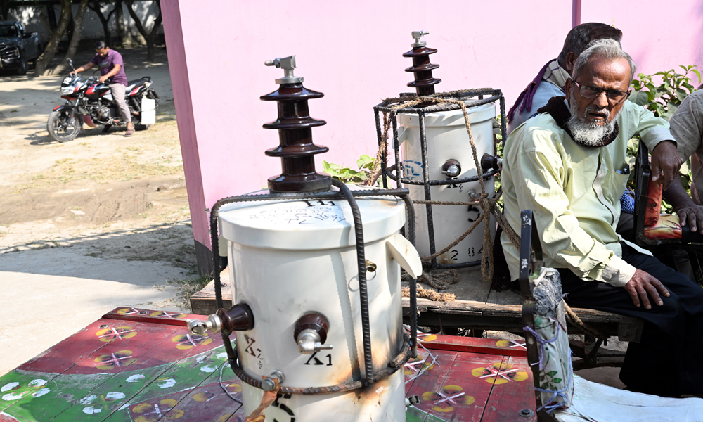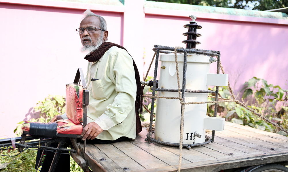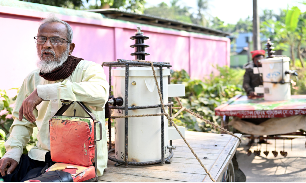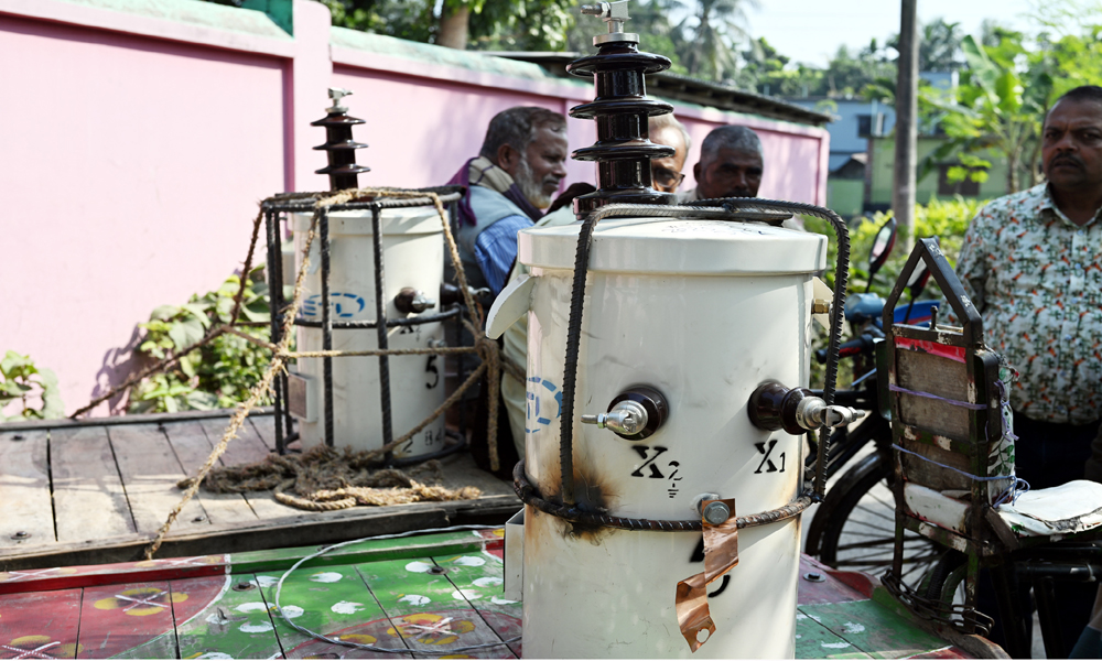 জমিতে পানি সেচের মোটরের বৈদ্যুতিক ট্যান্সফরমার চুরি নিত্যকার ঘটনা। একটি ট্যান্সফরমা চুরি গেলেই কৃষককে প্রায় লাখ টাকা জরিমানা গুনতে হয়। সাথে আছে হয়রানি। এ নিয়ে কৃষকের মধ্যে উদ্বিগ্নতার শেষ নেই। চুরি ঠেকাতে এবার বৈদতিক ট্যান্সফরমার লোহার রডের খাচায় ঢুকিয়েছে। প্রতিটি ট্যান্সফরমার জন্য বার্তি ২৭শ টাকা ব্যয় করতে হচ্ছে। পল্লী বিদ্যুত সমিতির সাব জোনাল অফিস থেকে প্রতিস্থাপনের জন্য দুই কৃষক ট্যান্সেফরমা কিনে নিয়ে বেড় হচ্ছেন। কুষ্টিয়ার খোকসা থেকে বুধবার দুপুরে ছবিটি তোলা।