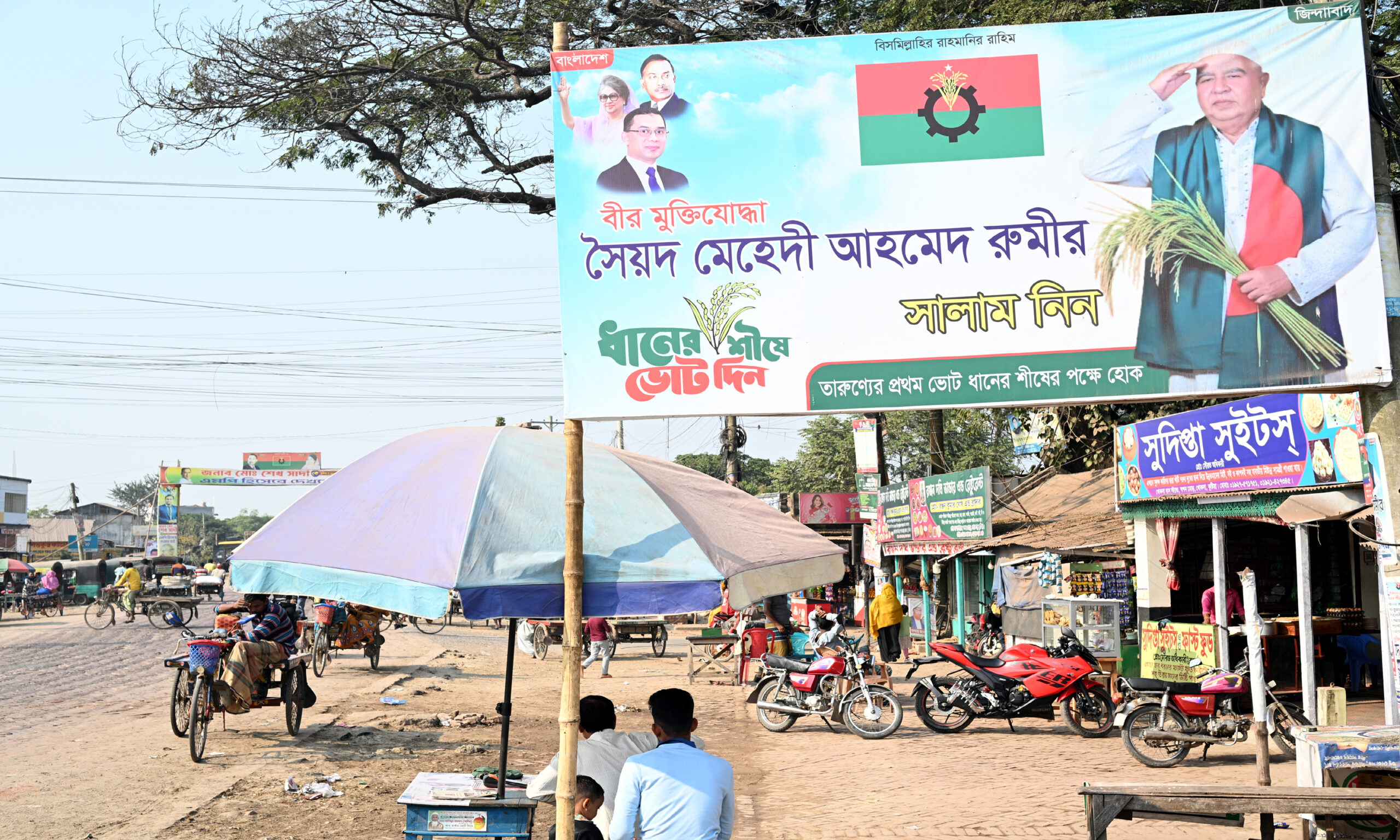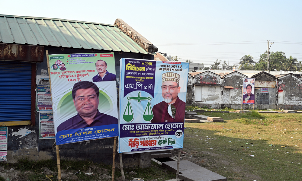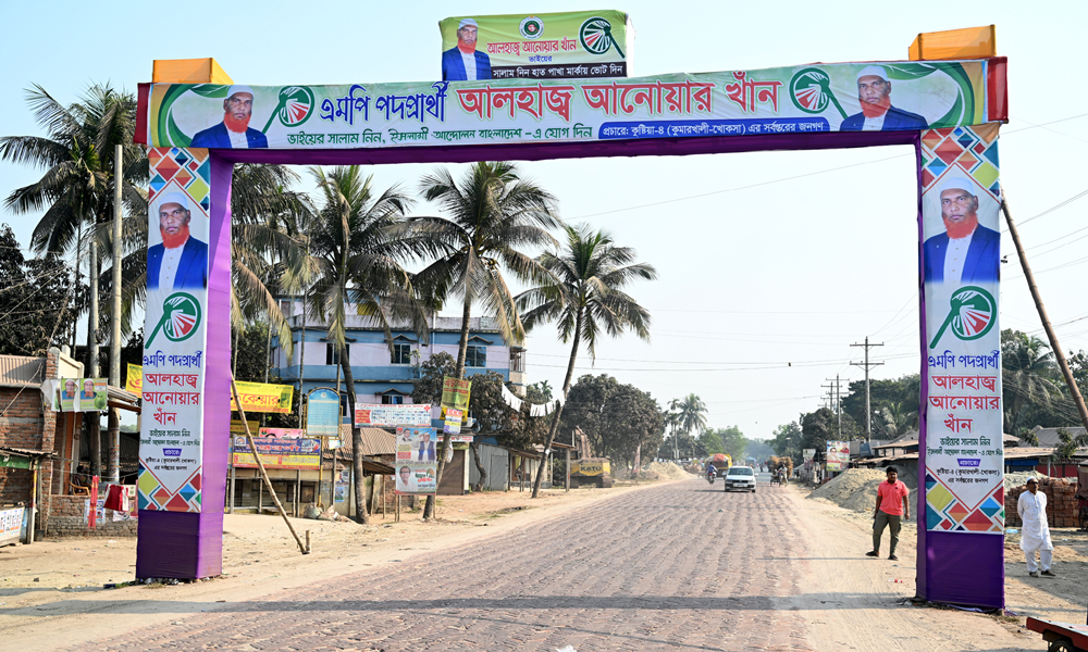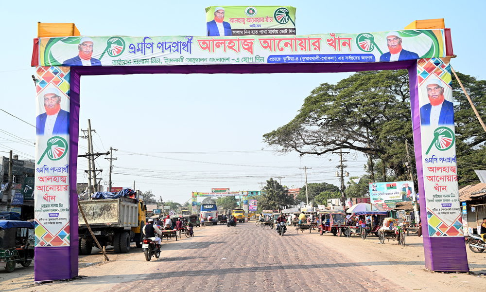 ত্রয়োদশ জাতীয় সংসদ নির্বাচনের তফশিল ঘোষনা হয়েছে। কমিশন পক্ষ থেকে প্রার্থীদের তরণ, ব্যানার, পোষ্টার অপসারণের জন্য ৪৮ ঘন্টা সময় দিয়ে প্রচারণা চালাচ্ছে। নির্বাচনী এলাকার মোড়ে মোড়ে দাঁড়িয়ে আছে বড় বড় তরণ। টাঙ্গানো আছে ব্যানার পোষ্টার। তফশিল ঘোষনার প্রায় ২৪ ঘন্টা পর ৭৮ কুষ্টিয়া ৪ আসনের একটি আঞ্চলিক মহাসড়কের খোকসা বাসস্ট্যান্ড থেকে শুক্রবার ছবিটি তোলা।