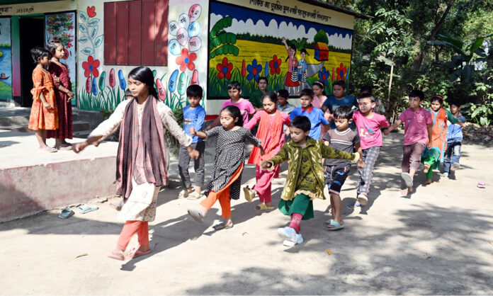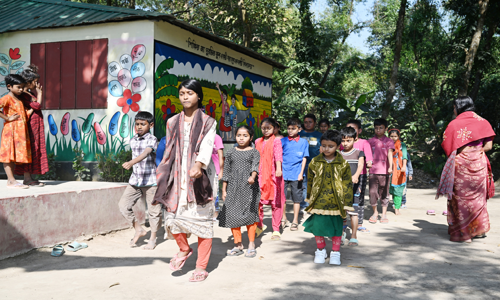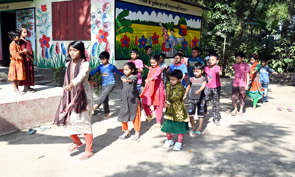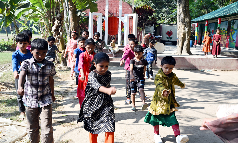 মহান বিজয় দিবস আসন্ন। মর্যাদার সাথে দিবসটি উদযাপনে পিছিয়ে নেই প্রাথমিক বিদ্যায়ের শিশু শিক্ষার্থীরাও। উপজেলা পর্যায়ের মার্চপাস্টে অংশ নেওয়ার জন্য পিটি প্যারোট করে নিচ্ছে। পাশেই এক বৃদ্ধা বসে জয়ঢাক বাজিয়ে শিশুদের তাল রাখতে সাহার্য করছেন। শনিবার দুপুরে কুষ্টিয়ার খোকসার শিমুলিয়া ইউনিয়নের ইচলাট গ্রামের রবিন্দ্রনাথ আনন্দোলো ট্রাস্ট প্রাথথিমিক বিদ্যালয়ের শিশুদিরে মার্চপাস্টের প্রস্তুতির ছবিটি তোলা।