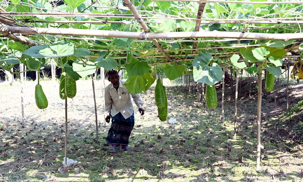 গ্রামীন পাকা রাস্তার ঢালের পরিতক্ত জমিতে শখের বসে ৩০টি লাউয়ের বীজ লাগিয়ে ৩ মাসে প্রায় ১২ হাজার টাকার লাউ বিক্রি করেছেন এক কৃষক।