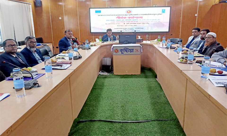 কুষ্টিয়ায় গ্রাম আদালত সম্পর্কে ব্যাপক জনসচেতনতা বৃদ্ধিতে সরকারি ও বেসরকারি প্রতিষ্ঠানসমূহের অংশগ্রহণের সমন্বিত পরিকল্পনা প্রণয়নের বিষয়ক কর্মশালা অনুষ্ঠিত হয়েছে।