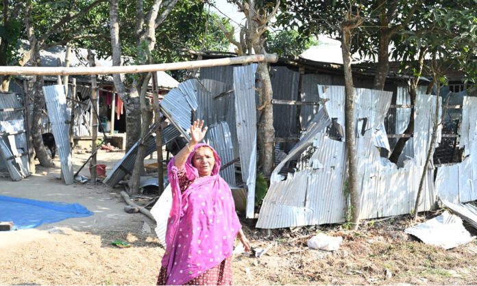 প্রতিপক্ষের হামলায় গৃহহীন দিনমুজুর ইসলামের স্ত্রী হোসনে আরা বেগম জানান, বুধবার সকালে গ্রামে গন্ডগোল হবে। এই খবর জানার পর তার স্বামী বাড়ি থেকে পালিয়ে যায়। ছোট ছোট তিন সন্তান দিয়ে সে শুধু বাড়িতে ছিলো। তার বাড়ির দক্ষিন থেকে মোল্লা’রা আর পশ্চিম থেকে খা’রা কয়েকশ লোক নিয়ে ডাক ভেঙ্গে ঘরে পাশের জমিতে ঝাপিয়ে পরে। এ সময় এক পক্ষের একজন লোক তার বাড়ির মধ্য দিয়ে পালিয়ে যায়। এর পর প্রতিপক্ষ তার ঘরে ঢুকে সবকিছু কুপিয়ে টুকরো টুকরো করে রেখে যায়। হামলার আগেই সে সন্তানদের নিয়ে পালিয়ে যায়।