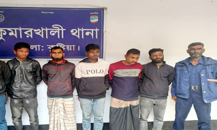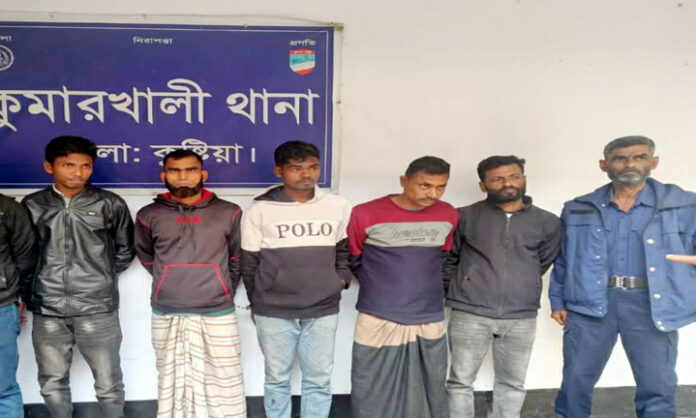 গ্রেপ্তারকৃতরা হলেন – কুমারখালীর জগন্নাথপুর ইউনিয়নের মহেন্দ্রপুর গ্রামের রুবেল হোসেন (২৮) ও দয়রামপুর গ্রামের আবু বক্কারের ছেলে আমিরুল ব্যাপারী (৫০) এবং যদুবয়রা ইউনিয়নের উত্তর চাঁদপুর গ্রামের সুরুজ শেখের ছেলে বকুল হোসেন (২২)। অপর দুইজন হলেন – কুষ্টিয়া সদর উপজেলার আড়ুয়াপাড়া এলাকার মৃত মোতালেব হোসেনের ছেলে মো.হেলাল (৩৭) ও চুয়াডাঙ্গার দামুড়হুদা থানার জয়রামপুর এলাকার মৃত তোফাজ্জেল হোসেনের ছেলে ফরিদ হোসেন (৪৫)।