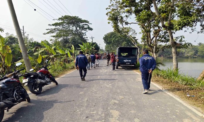 দুপুরে সরেজমিন গিয়ে দেখা যায়, পাকা সড়ক ঘেঁষে বড় পুকুর। পাড়ে পড়ে আছে একটি মোটরসাইকেল। তাতে ব্যাপক ভাঙচুর করা হয়েছে। দেশীয় অস্ত্র হাতে কয়েক শত মানুষ ছোটাছুটি করছেন। এ সময় ভাড়রার লোকজন গণমাধ্যম কর্মীদের ঘটনার চিত্র ধারণে বাধা প্রদান করেন এবং ঘটনাস্থল ত্যাগ করতে বাধ্য করেন।