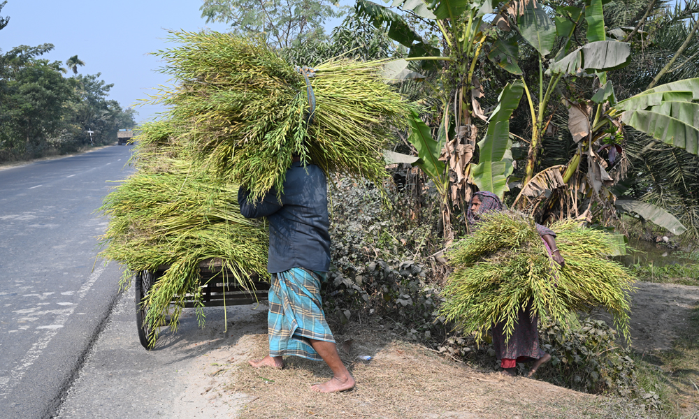 উচ্চ ফলনশীল সরিষা কাটা শুরু হয়েছে। ফলনও হয়েছে ভালো। বয়বৃদ্ধ কৃষক দম্পতি আনারুল ১০ কাঠা জমির সরিষা কেটেছেন। কিন্তু কুষ্টিয়া-রাজবাড়ী আঞ্চলিক মহাসড়কের খাড়া ঢাল মারিয়ে ফসল নিয়ে উঠে আসা তাদের কাছে আর এক যুদ্ধ। খোকসার মোড়াগাছা থেকে শনিবার দুপুরে ছবিটি তোলা।