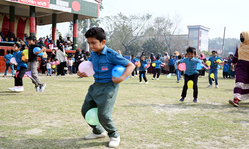 দুই হাতের বাহুর নিচে বাতাস ভরা দুটি বেলুন। পায়ের হাটুর মধ্যে আর একটি। এভাবেই ৫০ মিটার দূরের গন্তব্যে যেতে হবে দৌড়ে। শিশুদের জন্য কষ্টদায়ক এ প্রতিযোগীতার আয়োজন করেছিলো একটি শিশুদের স্কুল। তাদের বার্ষিক ক্রীড়া প্রতিযোগীতায়। প্রত্যেক শিশুর জন্য নির্ধারিত প্রতিটি ইভেন্টে অংশ গ্রহন বাধ্যতা মূলক। অন্যথায় ইভেন্ট প্রতি ১০ টাকা ফাইন দিতে হবে বলে মাইকে ঘোষনাও দেওয়া হয়। রবিবার সকালে কুষ্টিযার খোকসা জানিপুর সরকারি মাধ্যবিদ্যালয় মাঠে একটি শিশু স্কুলের বার্ষিক ক্রীড়া প্রতিযোগীতার এ আয়োজন করে।