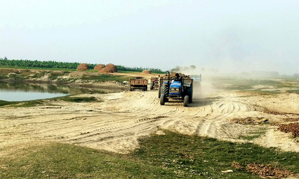 কুষ্টিয়ার কুমারখালী উপজেলার জগন্নাথপুর ইউনিয়নের চর মহেন্দ্রপুর এলাকার প্রায় একমাসের অধিক সময় ধরে প্রকাশ্যে কৃষিজমির মাটি – বালু কেটে বিক্রি করছে একটি চক্র। স্থানীয়দের অভিযোগ, এতে নেতৃত্ব দিচ্ছেন জগন্নাথপুর ইউনিয়ন পরিষদের চেয়ারম্যান সাবেক আওয়ামী লীগ নেতা আব্দুল্লাহ আল বাকী বাদশা ও ইউনিয়ন বিএনপির জ্যেষ্ঠ সহসভাপতি আব্দুর রশিদ মন্ডল। তারা সম্পর্কে আপন বিয়াই।