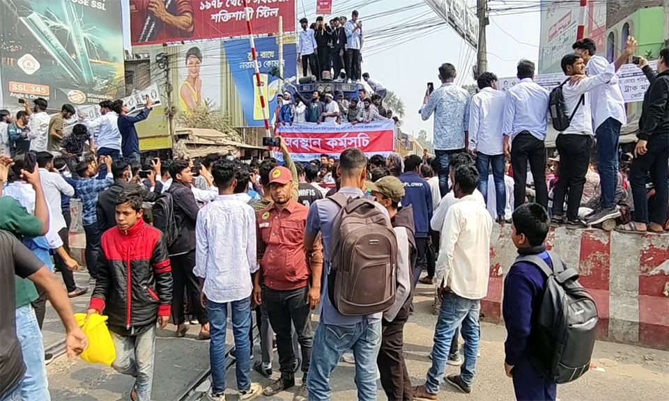 এসময় সড়ক ও রেলপথ অবরোধ করলে খুলনাগামী সুন্দরবন এক্সপ্রেস ট্রেনটি থামিয়ে বিভিন্ন ¯েøাগান দেন আন্দোলনকারীরা।