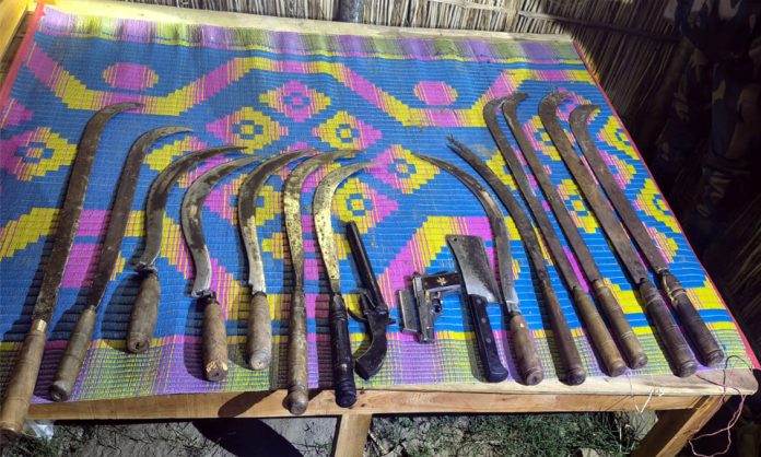 উদ্ধারকৃত অস্ত্রের রয়েছে ১টি বিদেশি পিস্তল, ১টি ম্যাগাজিন, ৩ রাউন্ড গুলি, ১টি দেশীয় শুটার গান এবং ২টি বড় রাম দা, ৫টি ছোট রাম দা, ৫টি হাসুয়া, ১টি চাপাতি ও ১টি ছুরি সহ মোট ১৪টি দেশীয় ধারালো অস্ত্র উদ্ধার করা হয়।
