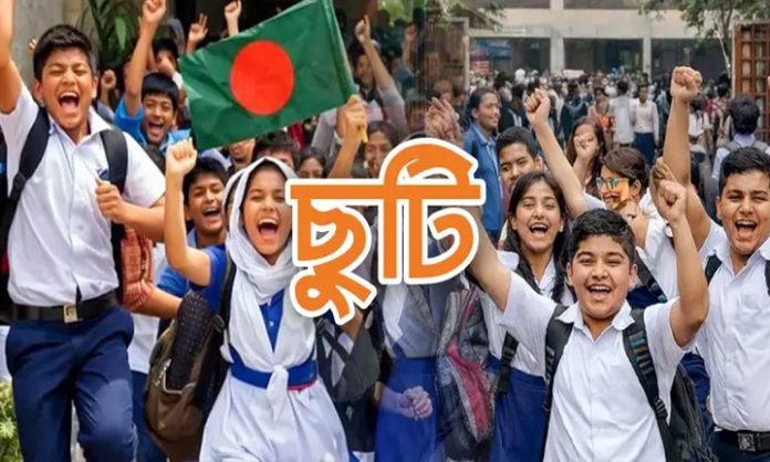 শিক্ষা মন্ত্রণালয়ের জারি করা প্রজ্ঞাপনে বলা হয়, পবিত্র রমজান, হরিচাঁদ ঠাকুরের আবির্ভাব, শবেকদর (১৭ মার্চ), জুমাতুলবিদা (২০ মার্চ), ঈদুল ফিতর (২১ মার্চ) এবং স্বাধীনতা ও জাতীয় দিবস (২৬ মার্চ) উপলক্ষে ১৯ ফেব্রæয়ারি থেকে ২৬ মার্চ পর্যন্ত ৩৬ দিন মাধ্যমিক ও নিম্ন মাধ্যমিক বিদ্যালয়গুলো ছুটি থাকবে।