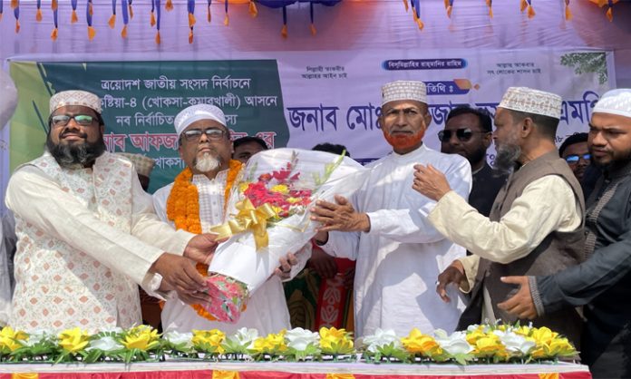 কুষ্টিয়া-৪ (খোকসা-কুমারখালী) আসনের নবনির্বাচিত সংসদ সদস্য মোঃ আফজাল হোসেনকে সংবর্ধনা প্রদান করা হয়ে।