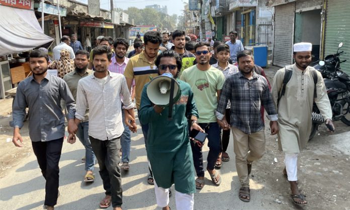 বিক্ষোভ সমাবেশে বক্তব্য রাখেন মোঃ আরিফুল ইসলাম, আজমির হোসেন রিয়াদ, হাবিব হোসেন, আরিফুল ইসলাম,আবু বক্কর সিদ্দিক প্রমুখ।