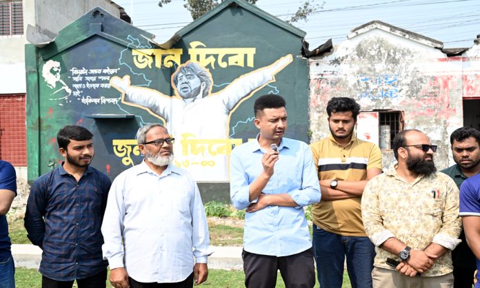 সমযোথার ভিাত্ততে রবিবার সকালে স্থানীয় স্কুল মার্কেটের দেওয়ালে আঁকা ওসমান হাদীর ছরির সামনে দাঁড়িয়ে তিনি নিজের দোষ স্বীকার করে ক্ষমা প্রার্থনা করেন।