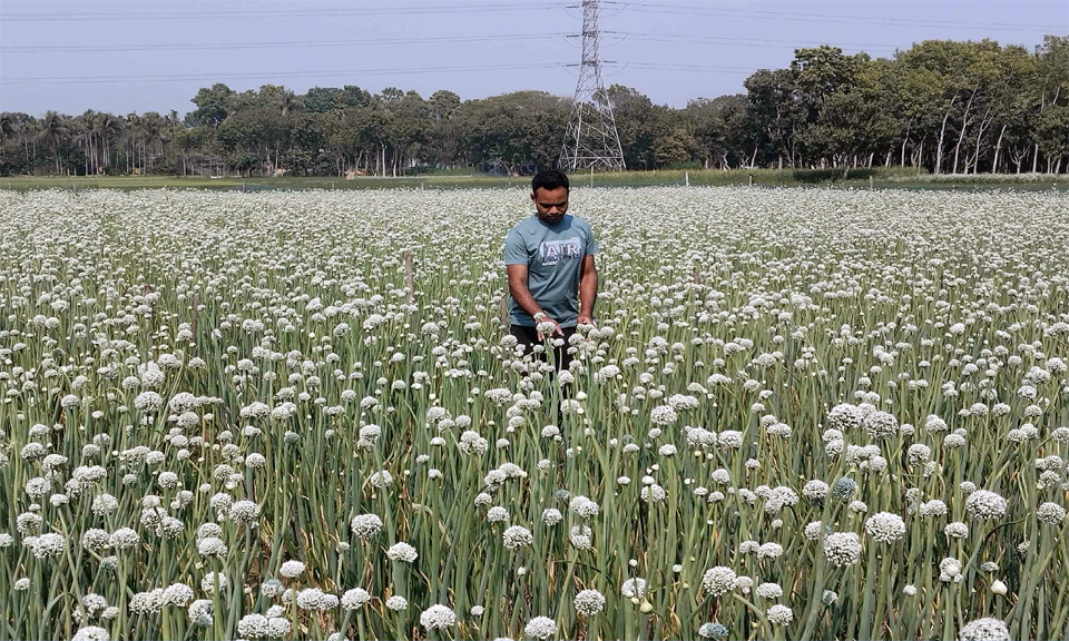 কুষ্টিয়ার কুমারখালী উপজেলার মাঠজুড়ে এখন পেঁয়াজের বীজ ক্ষেতের সাদা ফুলের গুচ্ছ ধীরে ধীরে পরিণত হচ্ছে গোলাকার বীজে। স্থানীয় কৃষকদের ভাষায়, এই বীজই তাদের কাছে “কালো সোনা”। ভালো ফলন ও লাভের আশায় দিনরাত পরিশ্রম করছেন কৃষকেরা।