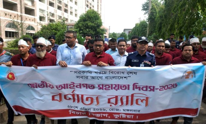 ‘সরকারি খরচে বিরোধ শেষ, সবার আগে বাংলাদেশ’-এই প্রতিপাদ্যকে সামনে রেখে কুষ্টিয়ায় যথাযোগ্য মর্যাদায় পালিত হয়েছে জাতীয় আইনগত সহায়তা দিবস।